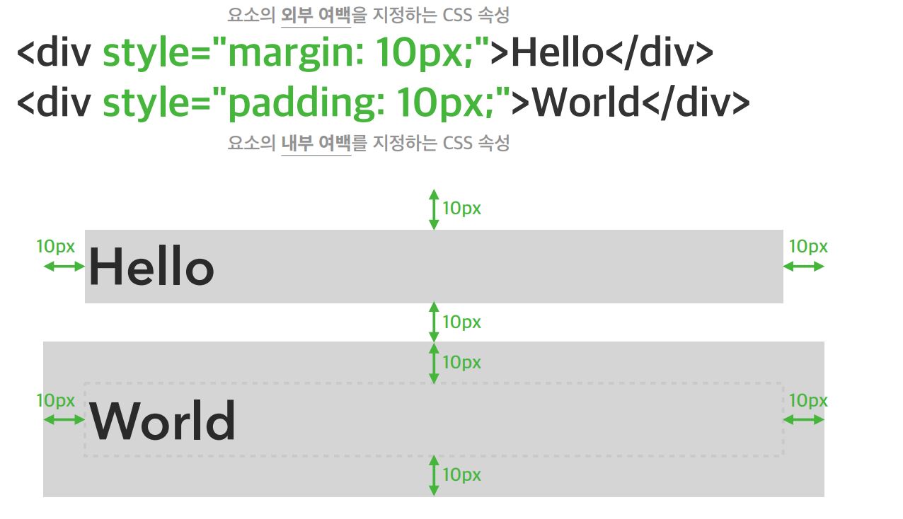 - 여백을 나타내는 margin과 padding에 값을 부여한다면 좌우로는 여백을 줄 수 있지만 상하로는 여백을 줄 수 없습니다.