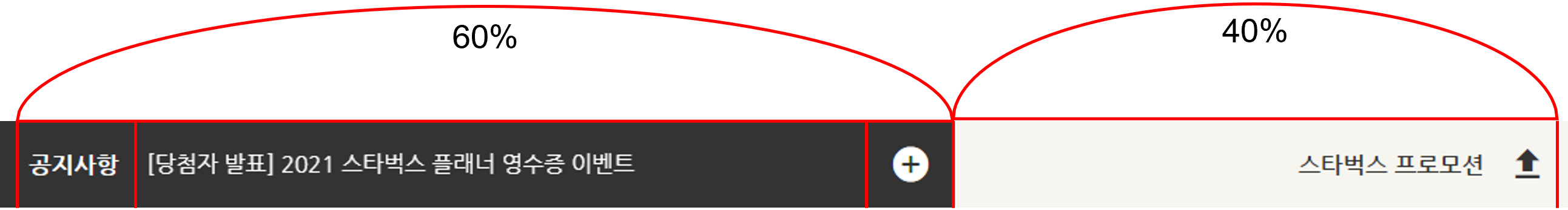 다음으로 inner__left의 너비를 60%, inner__right의 너비를 40%로 정해주면 완성 형태와 같은 비율을 가질 수 있습니다. 그리고 글이 한 줄로 출력되게 하기위해 notice-line의 display의 값을 flex로 주어야합니다.