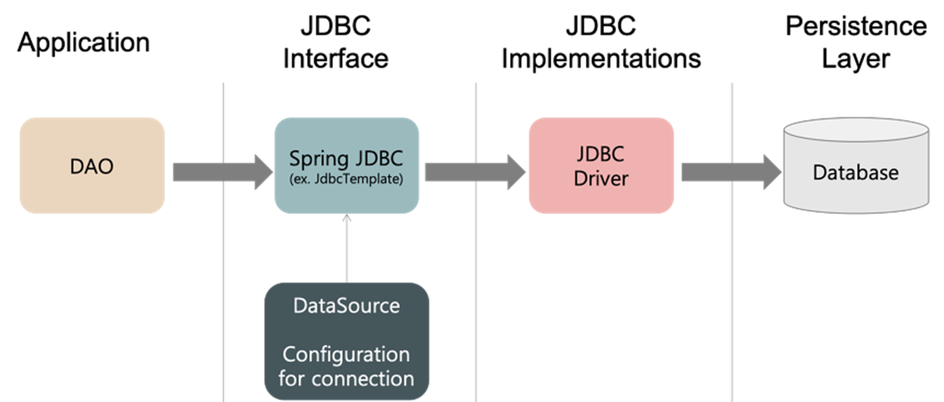JDBC Interface에서 DataSource를 통해 커넥션을 위한 설정들(드라이버 이름, url, 유저 이름, 비밀번호 등)을 관리한다.