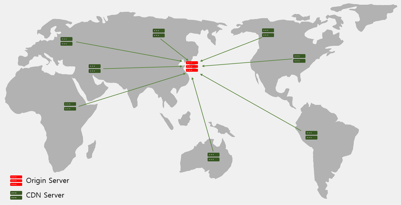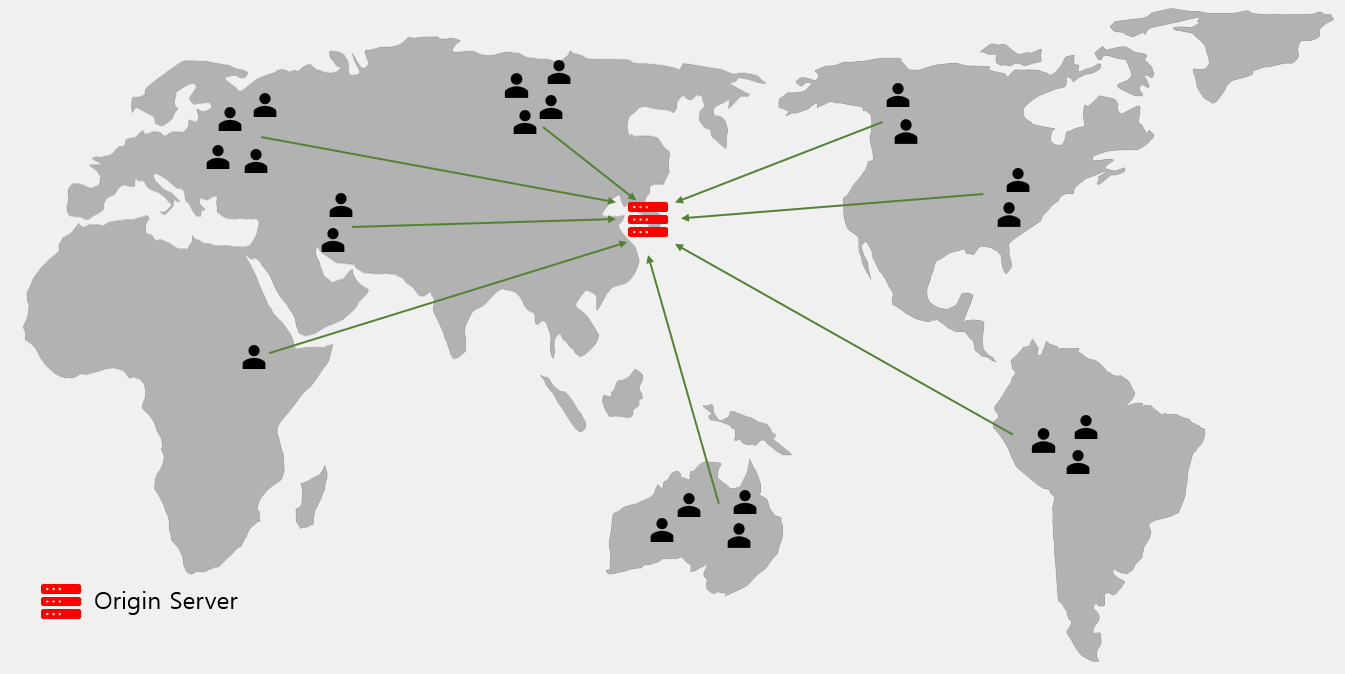 본 서버가 한대뿐이라면 어떠한 문제가 발생할까? 사용자는 사용자의 위치에 따라 물리적인 거리의 영향을 받을 수 있다. 본 서버와의 거리가 멀다면 해당 서버에 도착하기 위해 복잡한 여러 라우터를 거쳐야 하기 때문에 사용자의 요청을 서버에 전달하는 데 있어 시간적 소요가 발생한다. 뿐만 아니라 사용자들은 서버와 TCP 연결 과정을 가져야 하기에 누군가 연결 과정을 진행하고 있다면 다른 누군가는 그만큼 대기하며 자신의 순서를 기다린다. 즉, 이러한 대기 시간은 사용자가 이탈하는 원인이 된다.