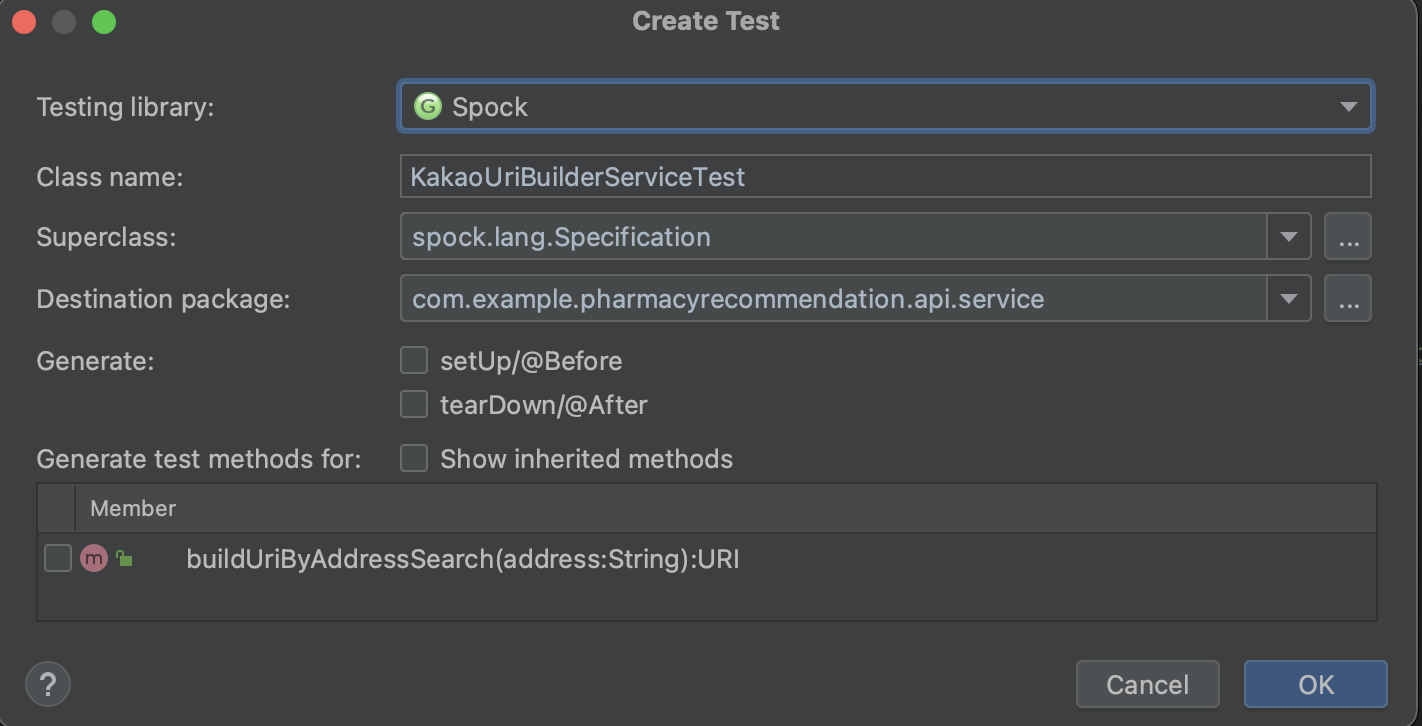 3. 테스트 라이브러리는 Spock로 변경, Specification 클래스 상속(Spock로 테스트를 생성하면 자동으로 Specification이 상속됨) 그리고 Groovy 클래스로 생성하기